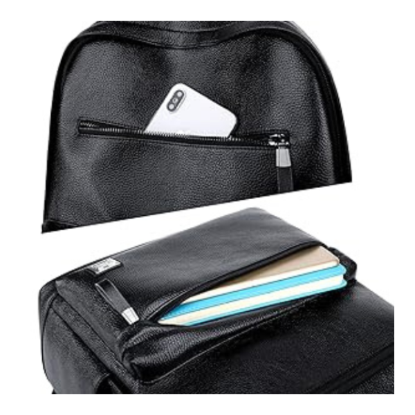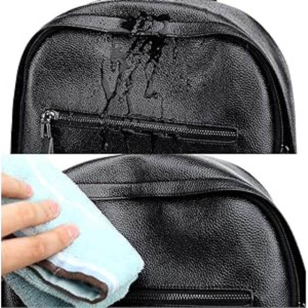 Made from waterproof faux leather, the backpack protects your belongings from light rain and spills. The smooth surface makes it easy to wipe clean, so it stays looking sharp and fresh even with daily use.